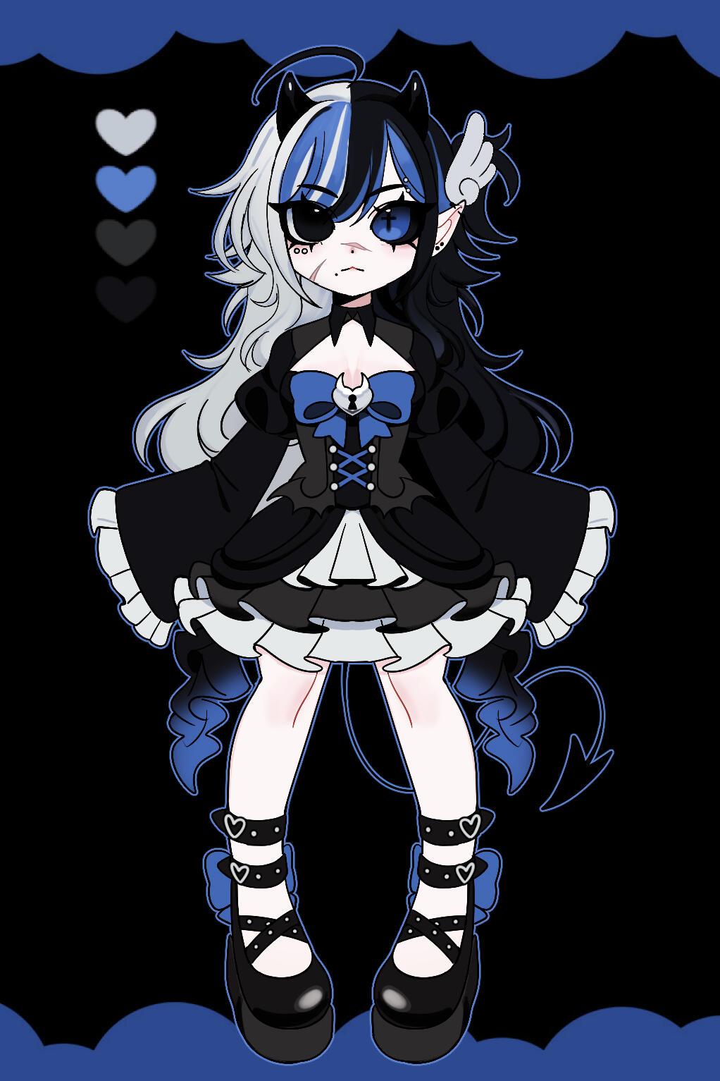 >Tiny mole under mouth on the leftMy VTuber / Stream persona is a demonic entety and you can find their reference below. For more references or additional artworks. You can find the toyhou.se profile using the TH icon down below, along with my Discord Streaming server.